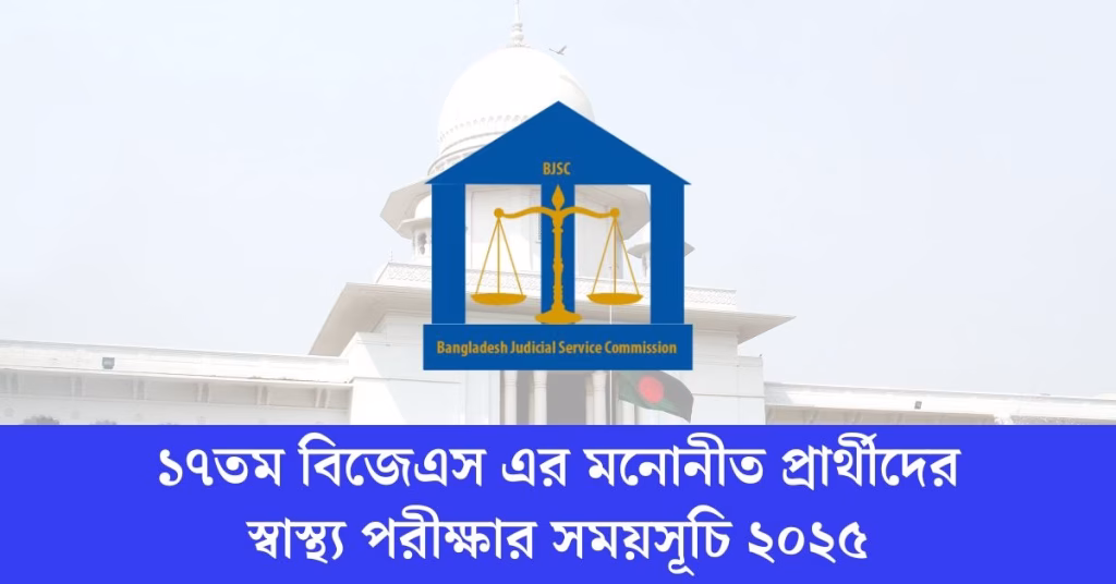 ১৭তম বিজেএস এর মনোনীত প্রার্থীদের স্বাস্থ্য পরীক্ষার সময়সূচি
