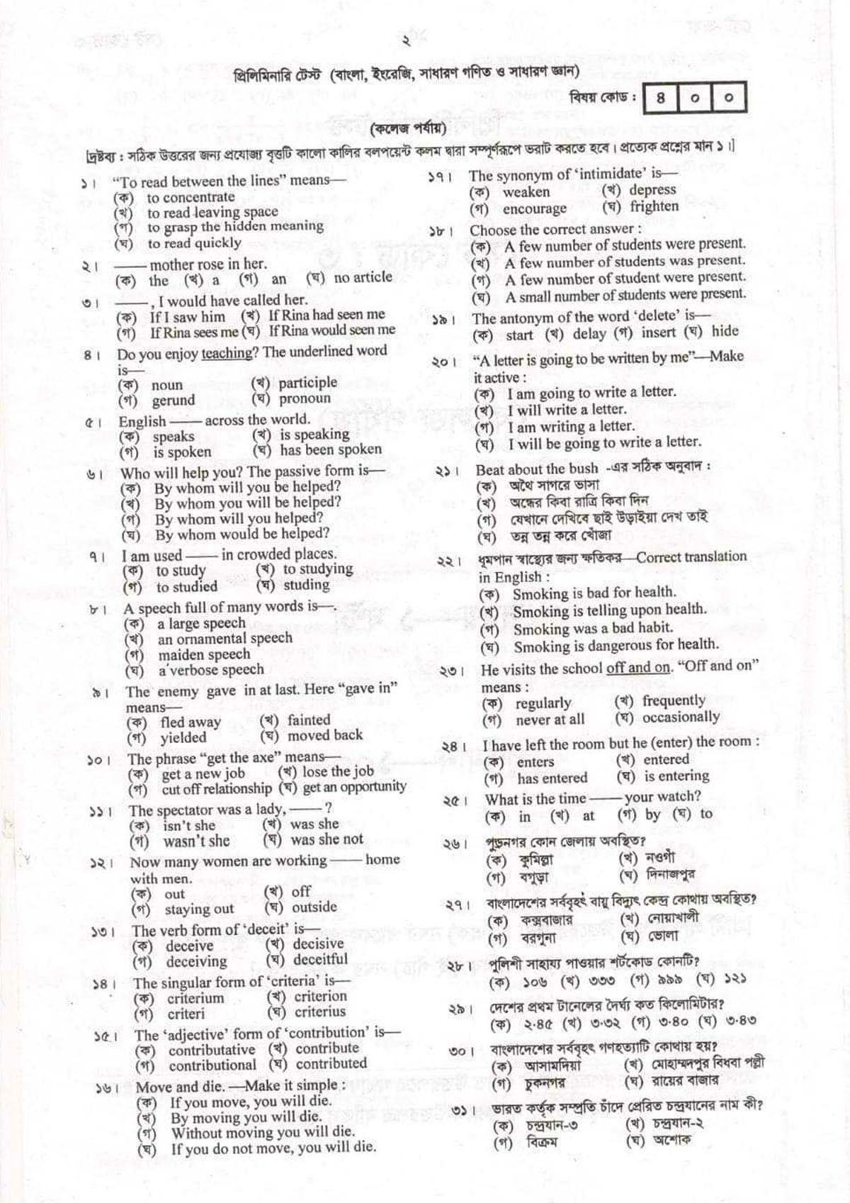 চলুন এবার দেখে নেওয়া যাক ১৮তম শিক্ষক নিবন্ধন প্রিলিমিনারি কলেজ পর্যায়ের পরীক্ষার প্রশ্নগুলো।