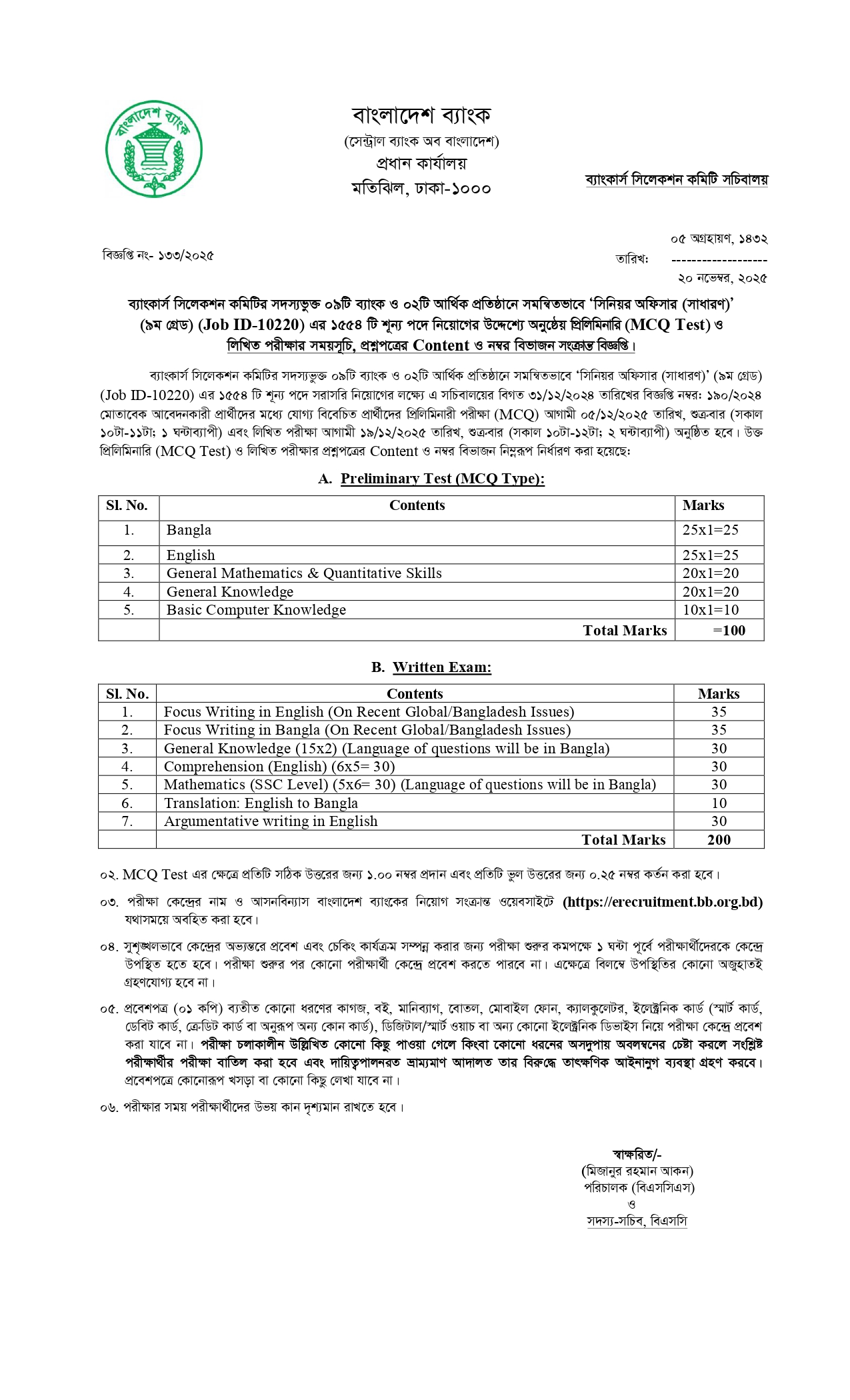 - লিখিত পরীক্ষা: ১৯ ডিসেম্বর, ২০২৫ (শুক্রবার)