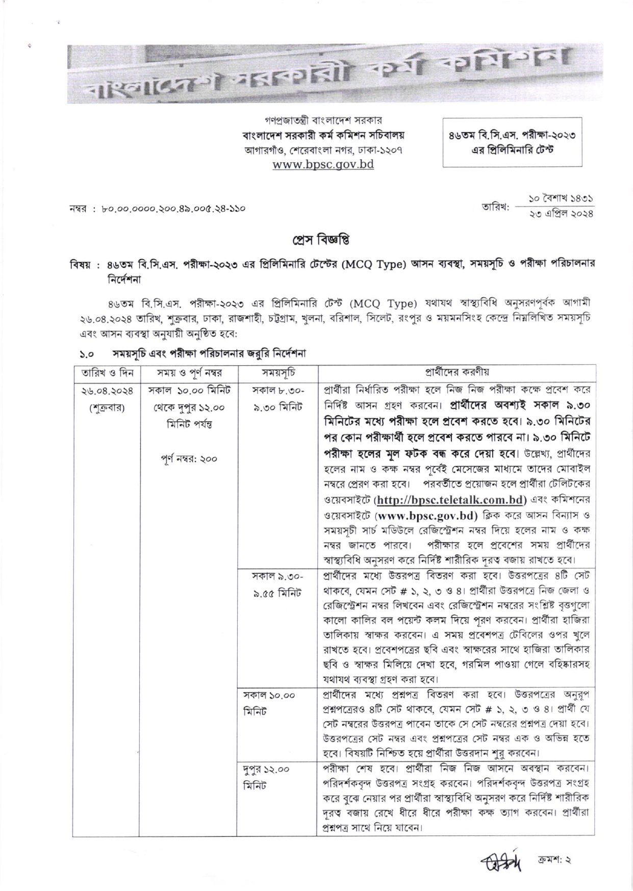 ৪৬তম বিসিএস সিট প্লান ২০২৪ | 46th BCS Seat Plan 2024