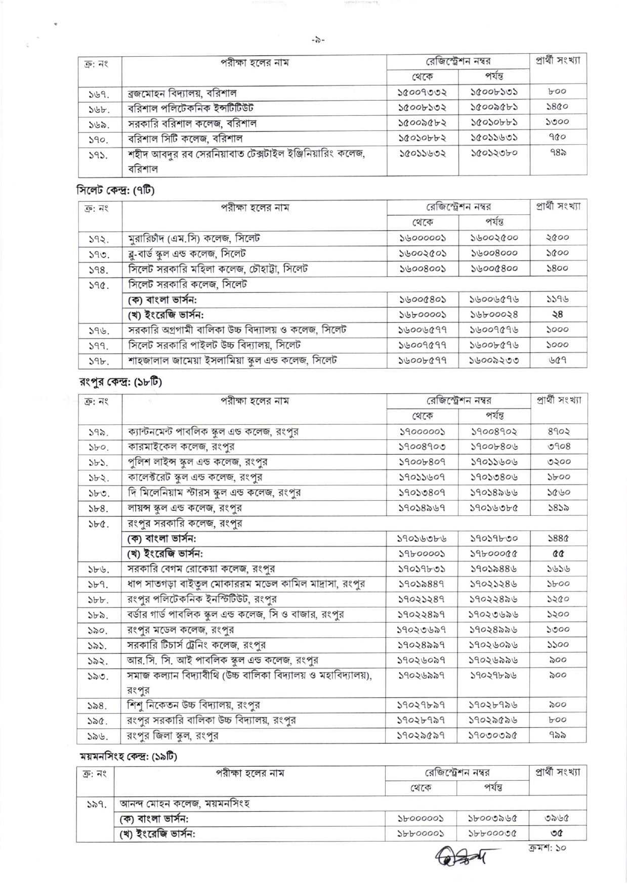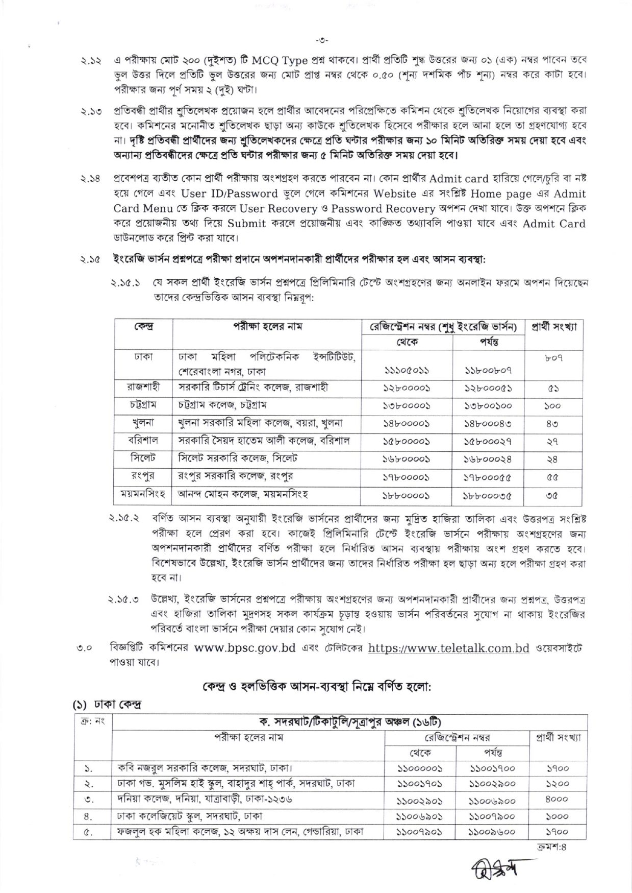 ৪৬তম বিসিএস প্রিলিমিনারি পরীক্ষার জন্য ৮ টি বিভাগে মোট কেন্দ্রের সংখ্যা ২১৫ টি। ৪৬তম বিসিএস সিট প্লান / আসন বিন্যাস দেখে জেনে নিন আপনার সিট কোন পরীক্ষা কেন্দ্রে রয়েছে। ৪৬তম বিসিএস শেষ সময়ের প্রস্তুতি নিতে বেশি বেশি মডেল টেস্ট / মক টেস্ট পরীক্ষা দিন। এবং অবশ্যই নির্ধারিত সময়ের পুর্বে ৯:৩০ এর পূর্বে পরীক্ষা কেন্দ্রে প্রবেশ করুন।