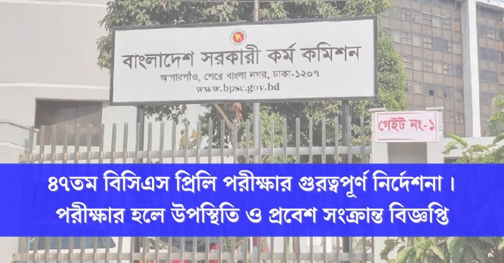 ৪৭তম বিসিএস প্রিলি পরীক্ষার গুরত্বপূর্ণ নির্দেশনা । পরীক্ষার হলে উপস্থিতি ও প্রবেশ সংক্রান্ত বিজ্ঞপ্তি