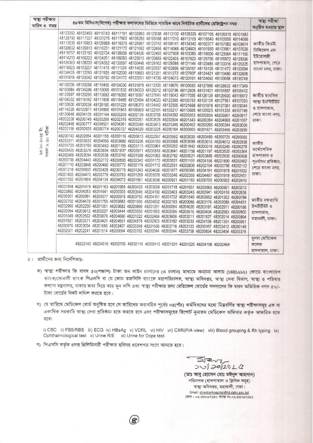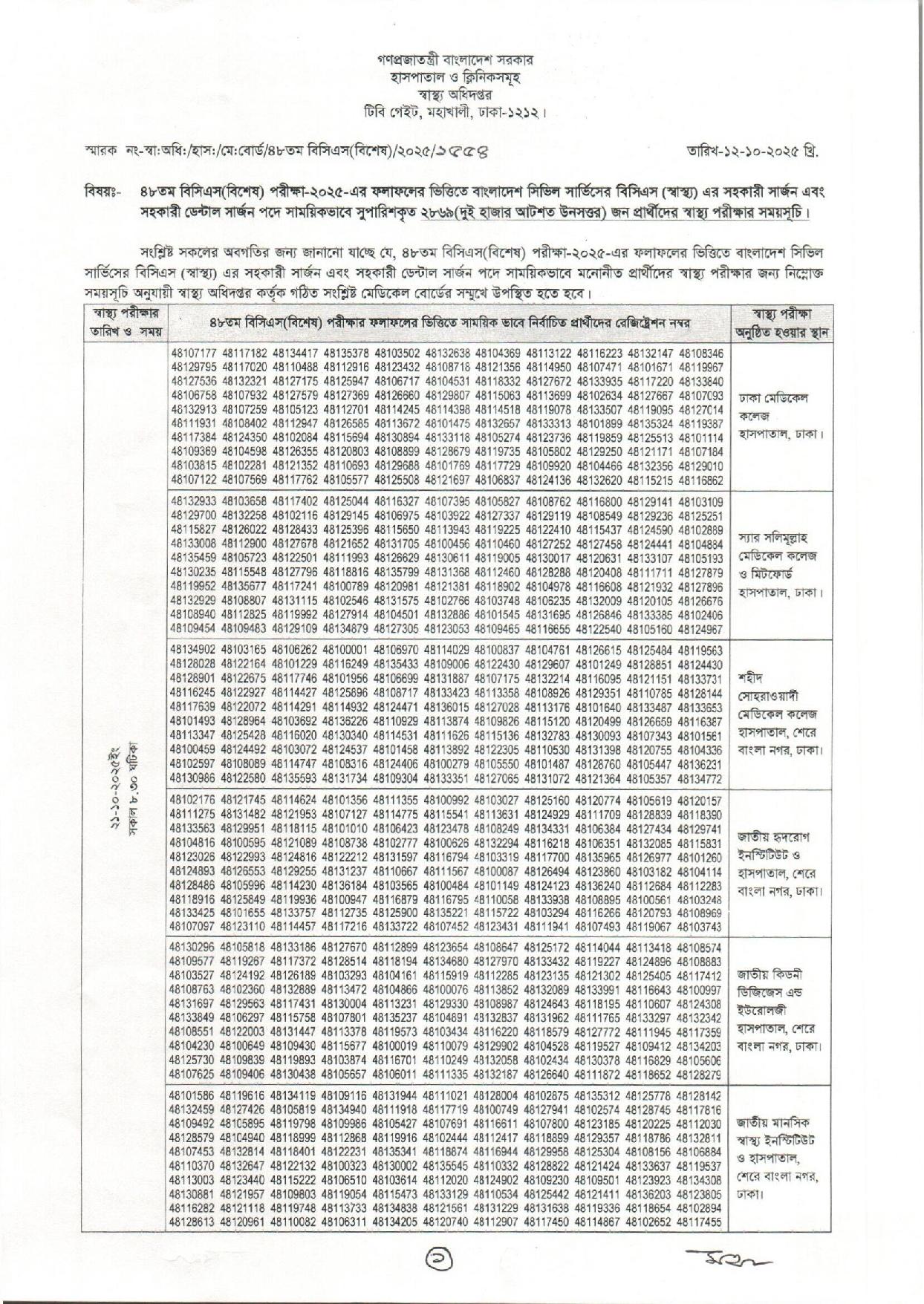 ৪৮তম বিসিএস স্বাস্থ্য পরীক্ষার সময়সূচি । 48th BCS Medical Test Date