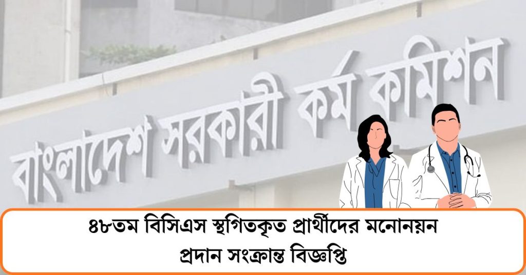 ৪৮তম বিসিএস স্থগিতকৃত প্রার্থীদের মনোনয়ন প্রদান সংক্রান্ত বিজ্ঞপ্তি