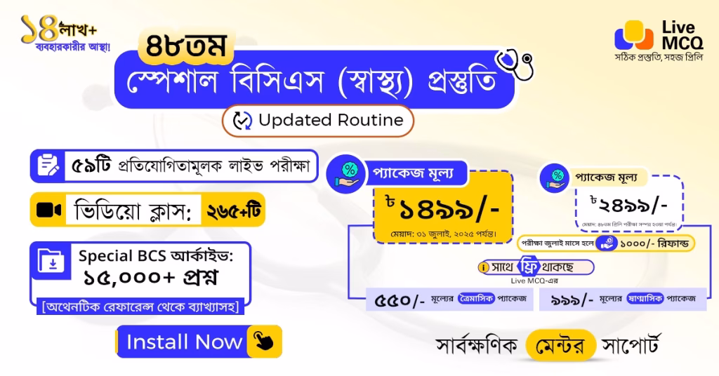 ৪৮তম স্পেশাল বিসিএস স্বাস্থ্য পূর্ণাঙ্গ প্রস্তুতির রুটিনে থাকছে