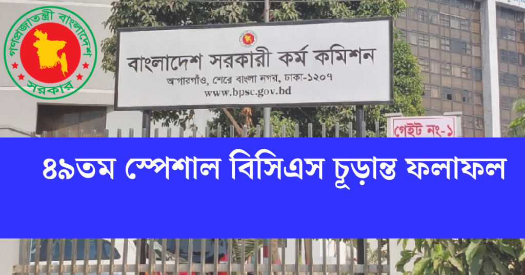 ৪৯তম স্পেশাল বিসিএসের চূড়ান্ত ফলাফল প্রকাশিত । 49th BCS Final Result