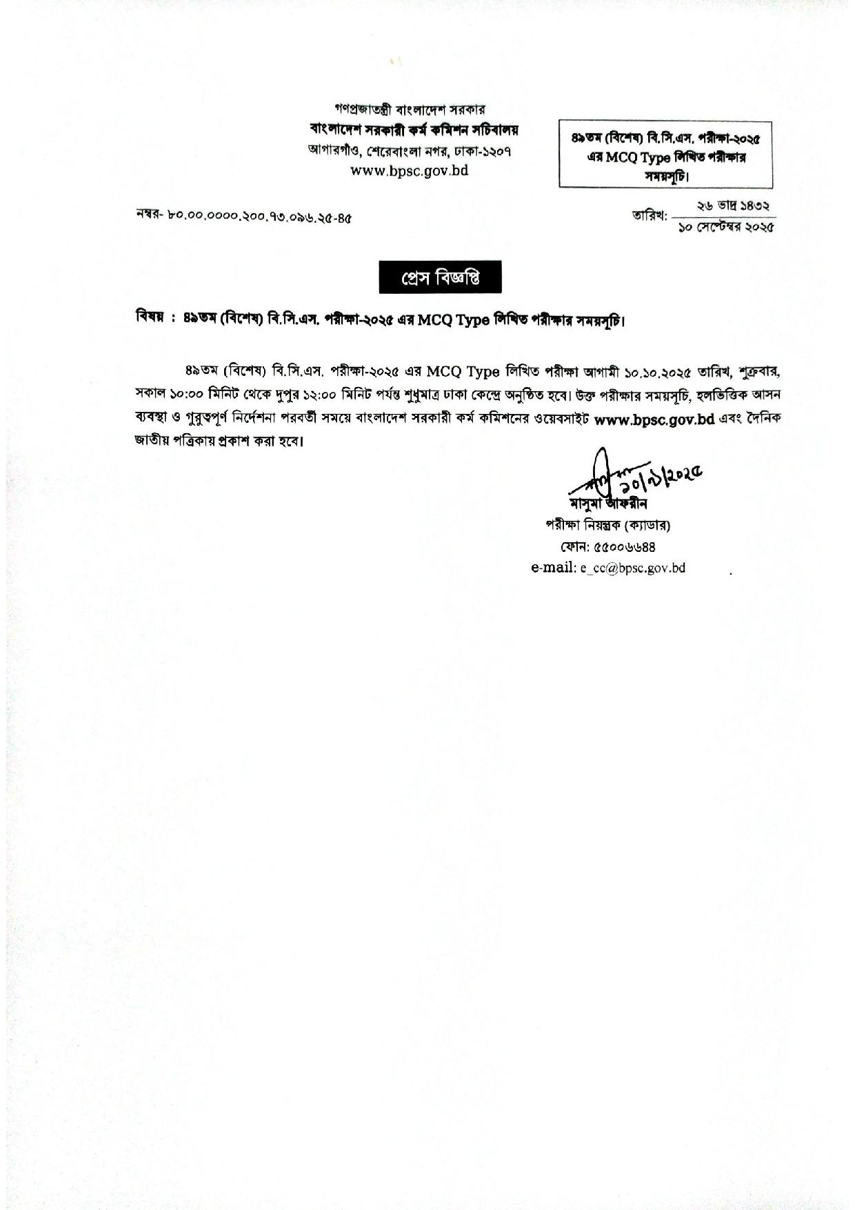 ৪৯তম স্পেশাল বিসিএস শিক্ষা লিখিত পরীক্ষার সময়সূচি ২০২৫