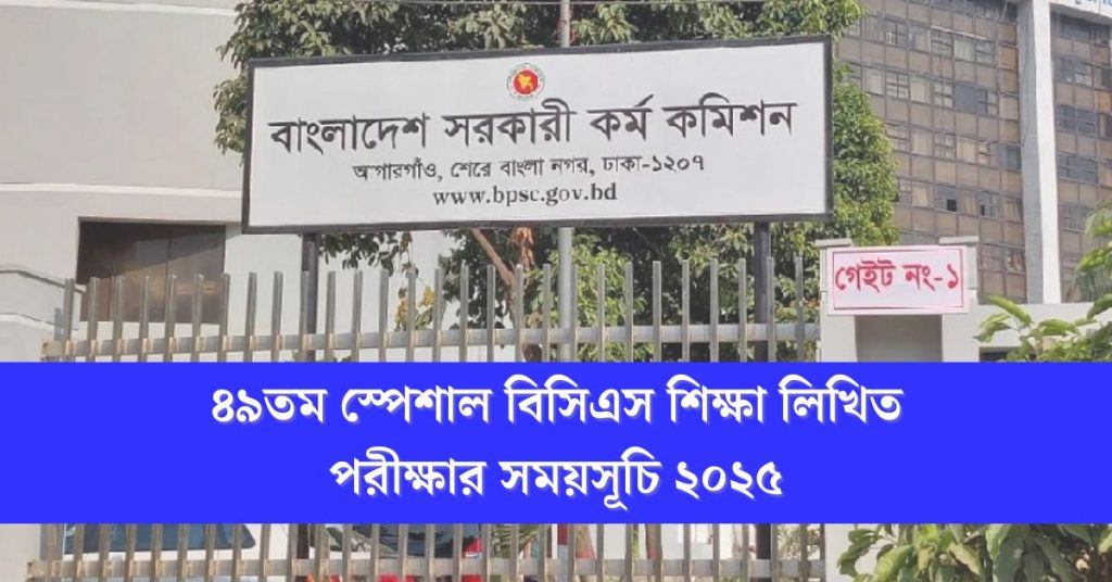 ৪৯তম স্পেশাল বিসিএস শিক্ষা লিখিত পরীক্ষার সময়সূচি ২০২৫