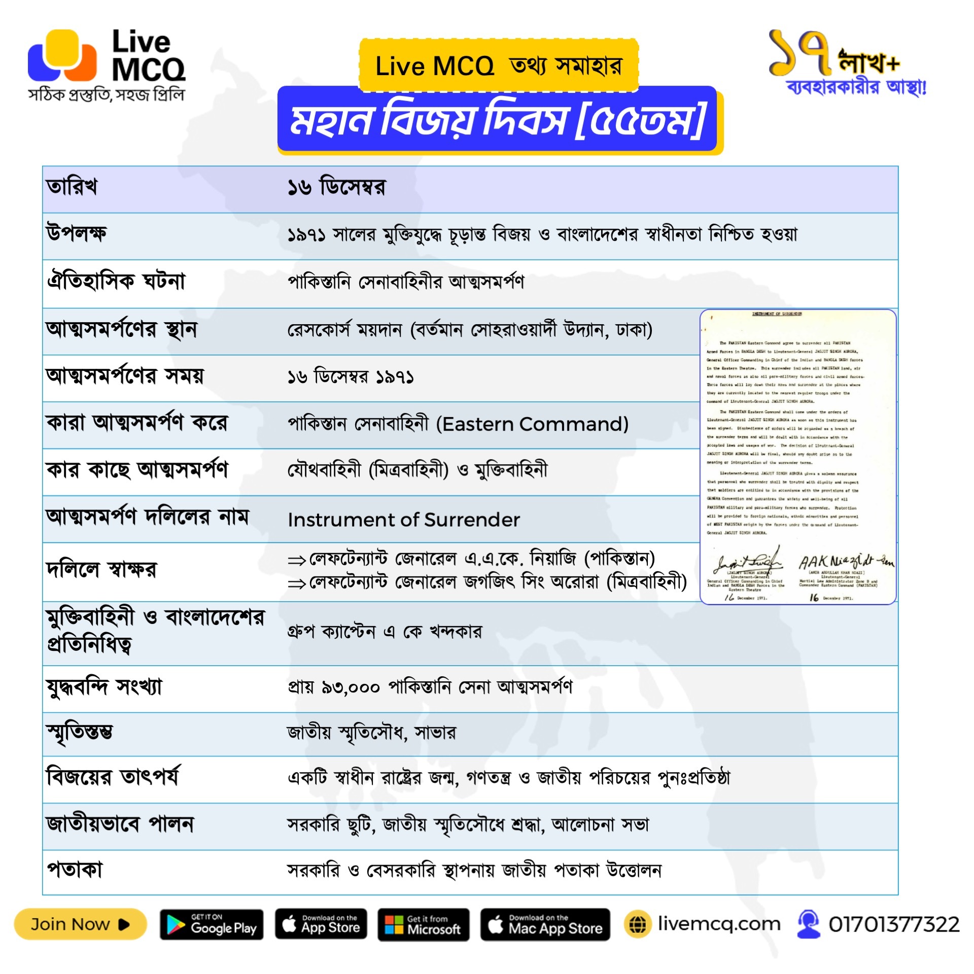 Live MCQ তথ্য সমাহার: মহান বিজয় দিবস – 55th Victory Day