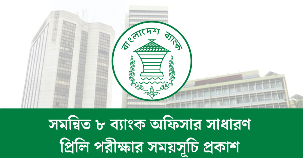 সমন্বিত ৮ ব্যাংক অফিসার সাধারণ প্রিলি পরীক্ষার সময়সূচি প্রকাশ