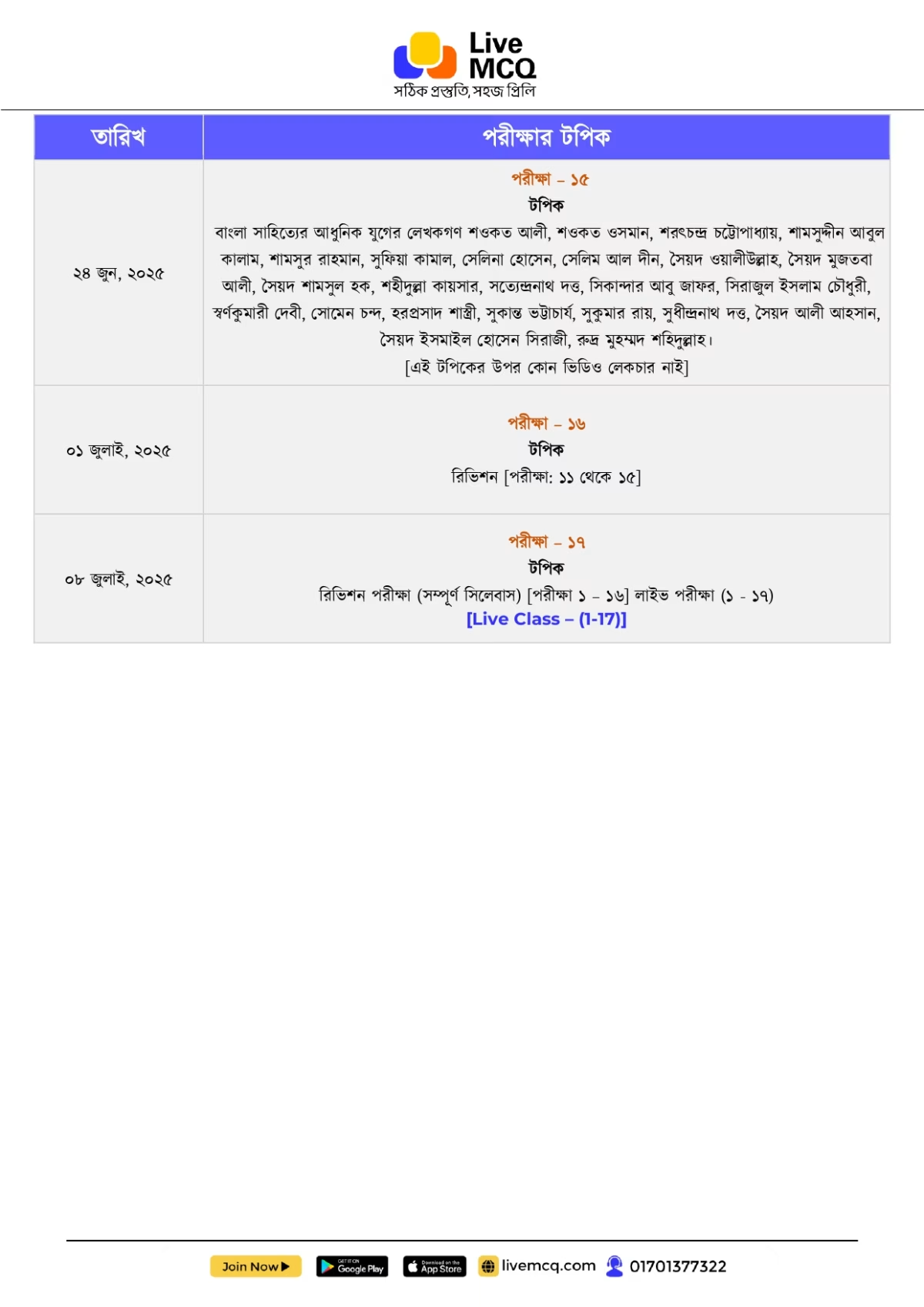 - মোট লাইভ পরীক্ষা: ১৭টি