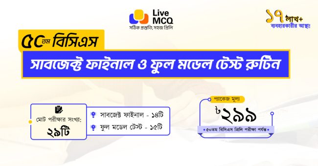 প্রিয় ব্যবহারকারীগণ, সবাইকে Live MCQ টিমের পক্ষ থেকে শুভেচ্ছা। আশা করি সবাই ভালো আছেন, সুস্থ আছেন এবং পড়াশোনার সাথে আছেন। […]