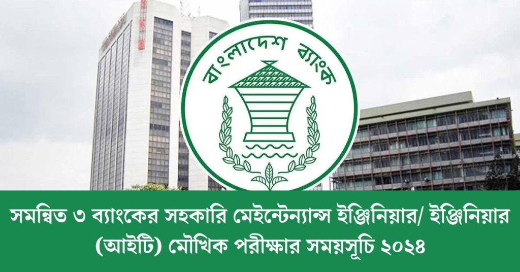 সমন্বিত ৩ ব্যাংকের সহকারি মেইন্টেন্যান্স ইঞ্জিনিয়ার/ ইঞ্জিনিয়ার (আইটি) মৌখিক পরীক্ষার সময়সূচি ২০২৪