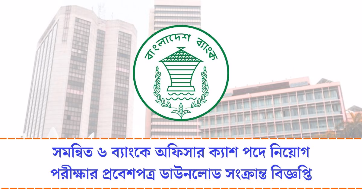 সমন্বিত ৬ ব্যাংকে অফিসার ক্যাশ পদে নিয়োগ পরীক্ষার প্রবেশপত্র ডাউনলোড সংক্রান্ত বিজ্ঞপ্তি