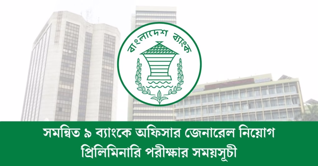 সমন্বিত ৯ ব্যাংকে অফিসার জেনারেল নিয়োগ প্রিলিমিনারি পরীক্ষার সময়সূচী
