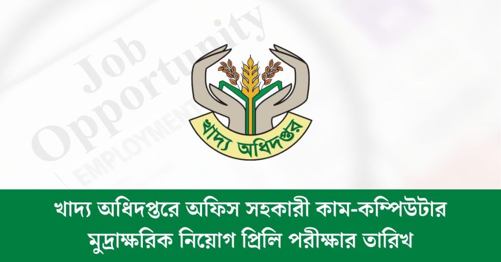 খাদ্য অধিদপ্তরে অফিস সহকারী কাম-কম্পিউটার মুদ্রাক্ষরিক নিয়োগ প্রিলি পরীক্ষার তারিখ