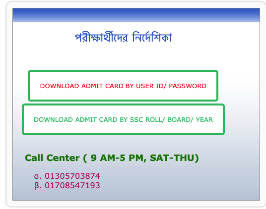 প্রার্থীরা https://admit.dpe.gov.bd/ ওয়েবসাইট থেকে Username এবং Password দিয়ে অথবা, এসএসসি পরীক্ষার রোল, বোর্ড ও পাশের সন দিয়ে লগইন করে প্রবেশপত্র ডাউনলোড করতে পারবেন।