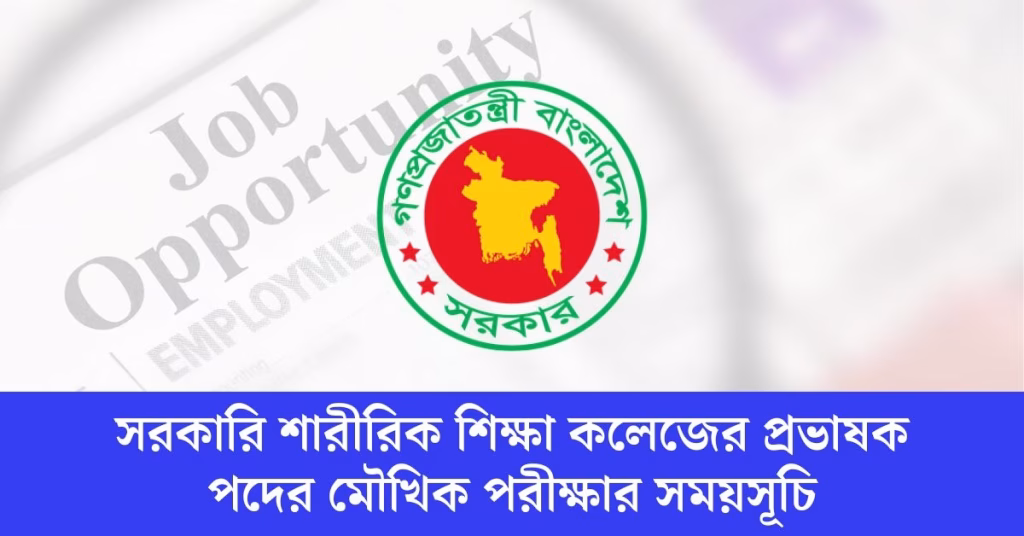 সরকারি শারীরিক শিক্ষা কলেজের প্রভাষক পদের মৌখিক পরীক্ষার সময়সূচি