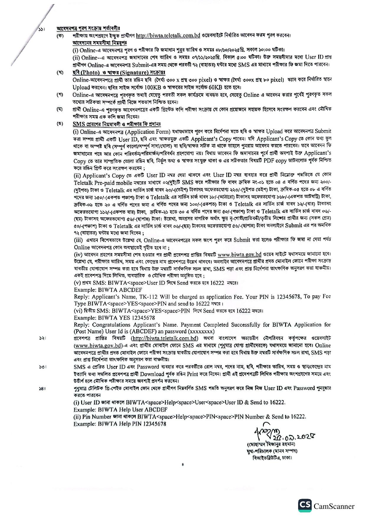 আবেদনের লিংক: biwta.teletalk.com.bd/