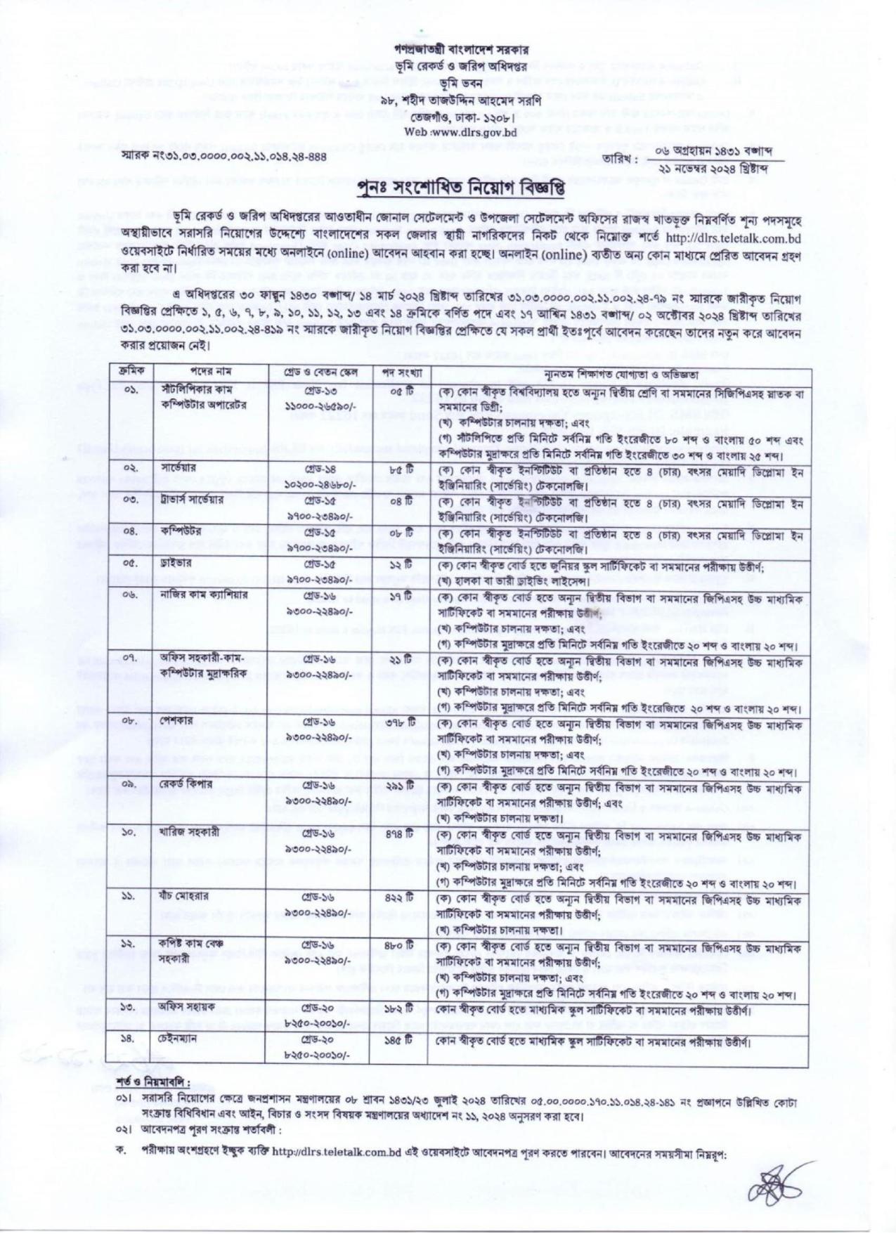 ভূমি রেকর্ড ও জরিপ অধিদপ্তর সংশোধিত নিয়োগ বিজ্ঞপ্তি