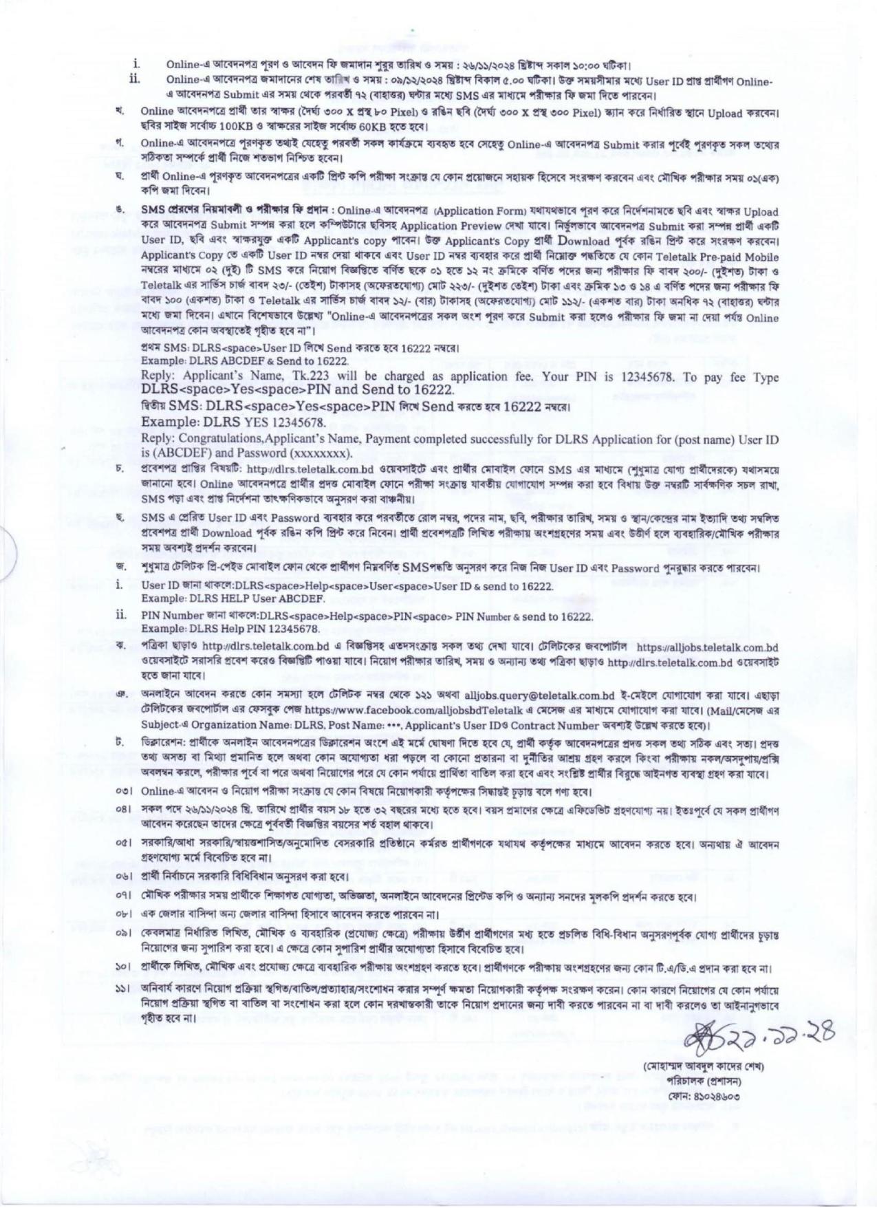 অনলাইনে আবেদনের লিঙ্ক: http://dlrs.teletalk.com.bd/