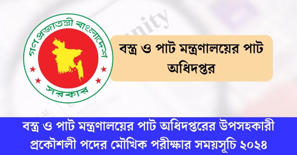 বস্ত্র ও পাট মন্ত্রণালয়ের পাট অধিদপ্তরের উপসহকারী প্রকৌশলী পদের মৌখিক পরীক্ষার সময়সূচি ২০২৪