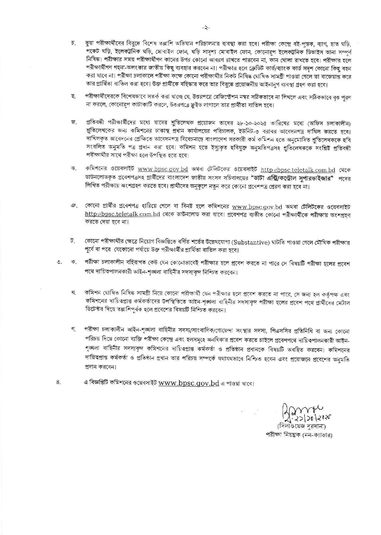 প্রিয় চাকরিপ্রত্যাশীগণ, আপনাদের অবগতির জন্য জানানো যাচ্ছে যে, বাংলাদেশ জাতীয় সংসদ সচিবালয়ের ডাটা এন্ট্রি-কন্ট্রোল সুপারভাইজার পদের লিখিত সময়সূচি প্রকাশিত হয়েছে। বিজ্ঞপ্তি অনুসারে, বাংলাদেশ জাতীয় সংসদ সচিবালয়ের ১০ম গ্রেডভুক্ত “ডাটা এন্ট্রি/কন্ট্রোল সুপারভাইজার” পদের অনলাইনে আবেদনকারী ৩৬২ জন প্রার্থীর লিখিত পরীক্ষা আগামী ৫ নভেম্বর, ২০২৫ তারিখ (বুধবার) বেলা ১২টা থেকে বিকাল ৪টা পর্যন্ত ৪ ঘন্টা ব্যাপি অনুষ্ঠিত হবে। ২১ অক্টোবর, ২০২৫ তারিখ এসকল তথ্য নিশ্চিত করে বিজ্ঞপ্তি প্রকাশ করে পিএসসি।
