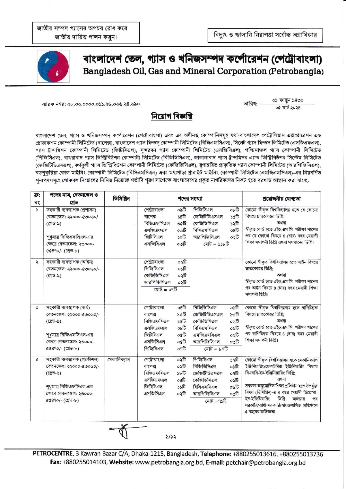 পেট্রোবাংলা নিয়োগ বিজ্ঞপ্তি ২০২৪ | পদ সংখ্যা ৬৭০