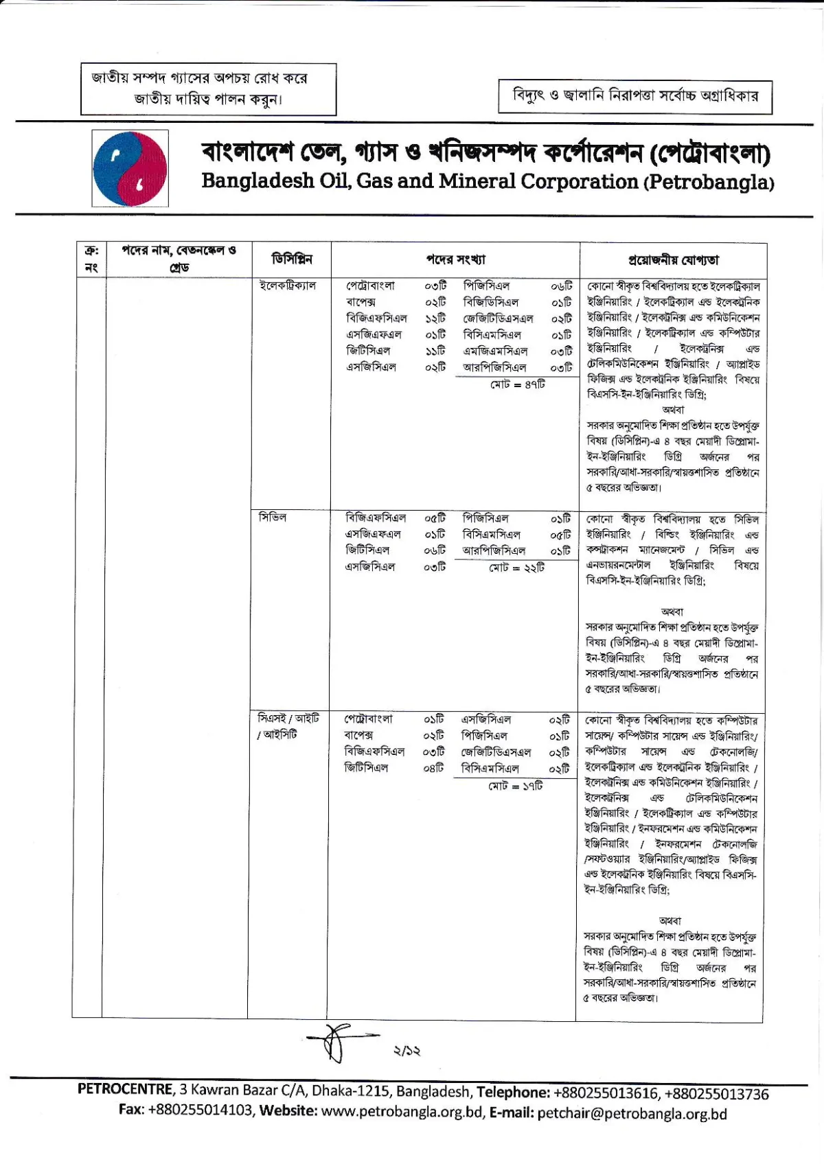 পেট্রোবাংলা নিয়োগ বিজ্ঞপ্তি ২০২৪