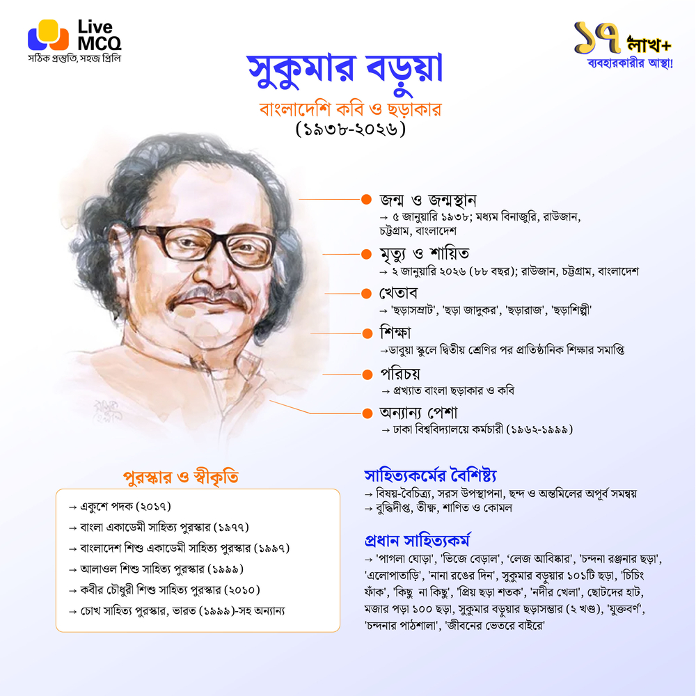 Live MCQ তথ্য সমাহার: সুকুমার বড়ুয়া [বাংলাদেশি কবি ও ছড়াকার]