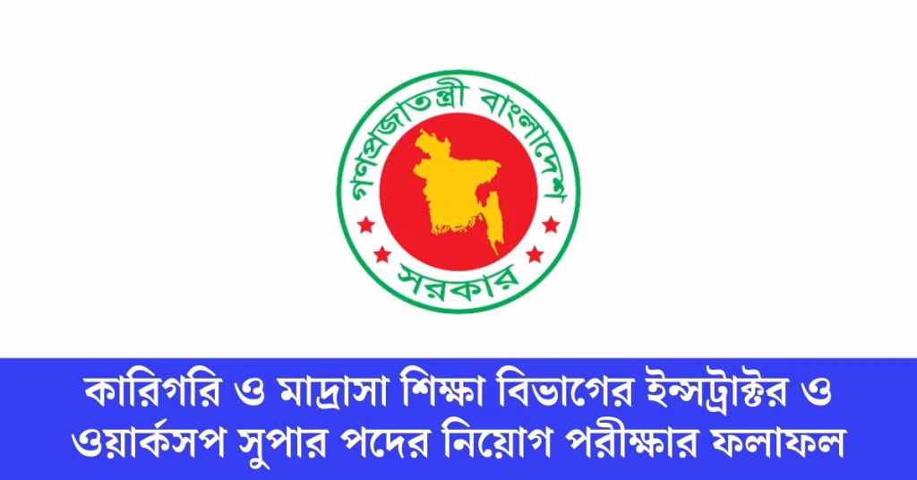 কারিগরি ও মাদ্রাসা শিক্ষা বিভাগের ইন্সট্রাক্টর ও ওয়ার্কসপ সুপার পদের নিয়োগ পরীক্ষার ফলাফল