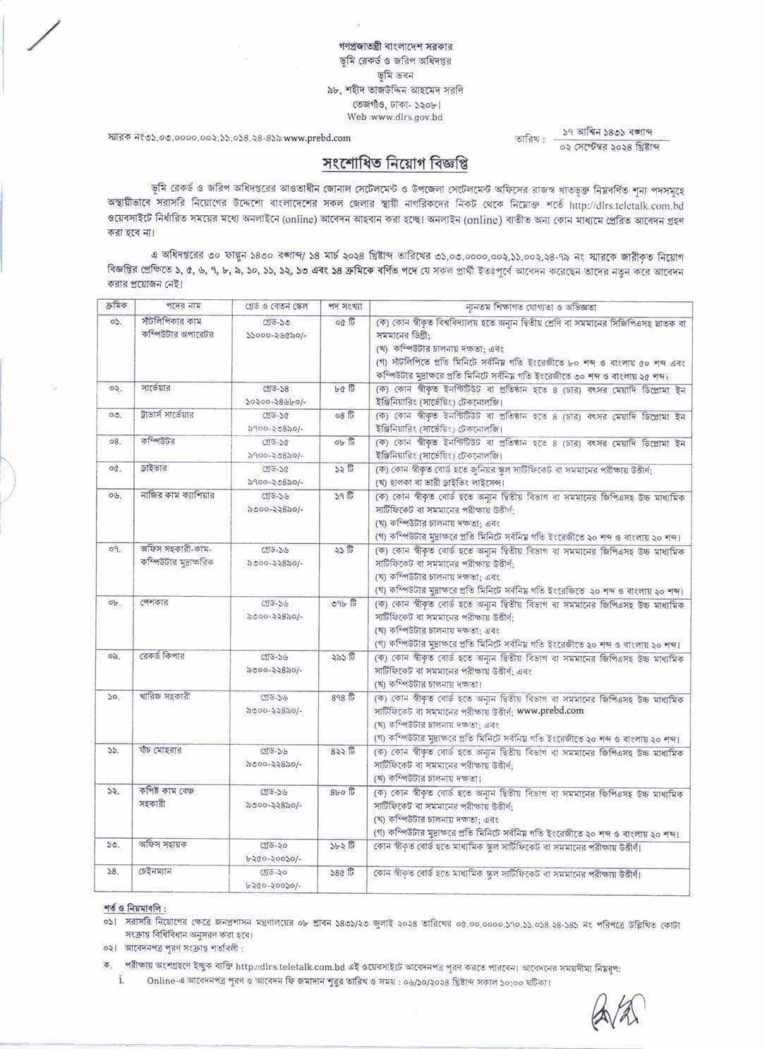 ভূমি রেকর্ড ও জরিপ অধিদপ্তর সংশোধিত নিয়োগ বিজ্ঞপ্তি ২০২৪ | আবেদন শুরু ৬ অক্টোবর